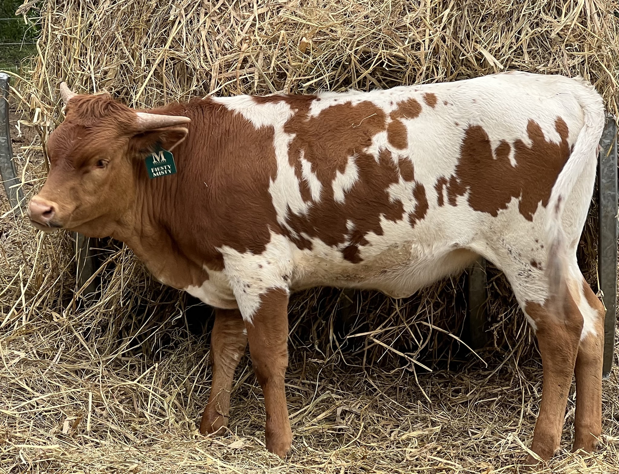 Multiple Futurity champion M7 Fiesty Misty is an amazing young producing cow. She had her second calf before 3 years old. Unfortunately she broke 6” off at a Futurity. The good news is she’ll be at M7 forever raising championship progeny!