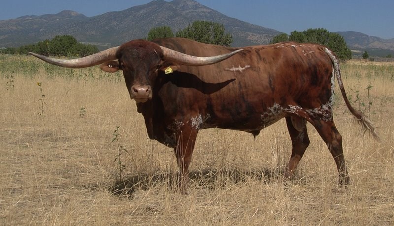 We are very happy to now be part owner of this bull. He is the total package of Horn, Color and Pedigree. Horn Showcase Champion in 2012 with a T2T of 74.125". This bull produces quiet, good looking calves with a lot of lateral horn. Check out his recent calves in his progeny section below. We really like them!