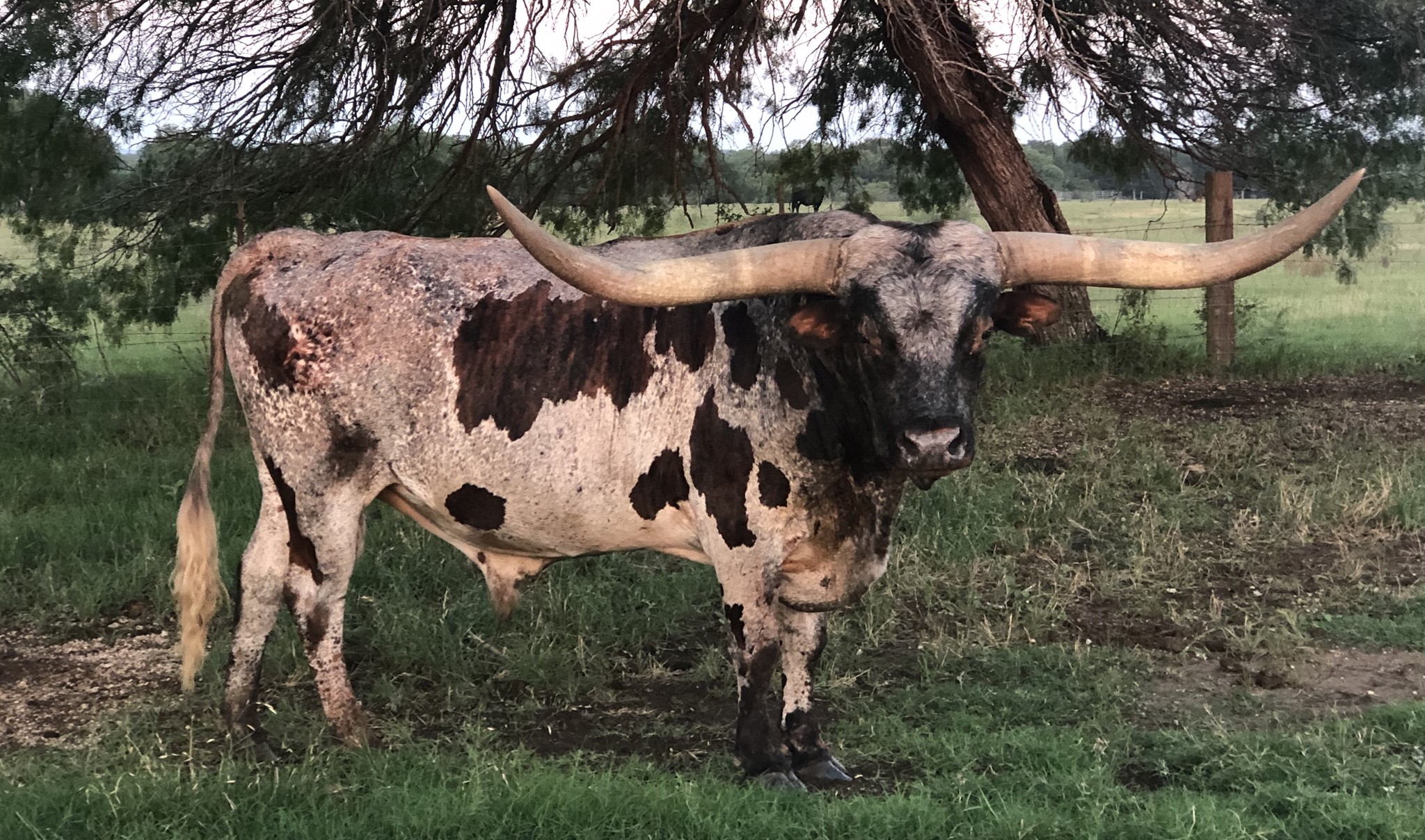 LAR Smoke'N is out of a full sister to the longest horned bull in the world from 2008-2013 (Trail Dust), and Bob Loomis bred Cowboy Chex. Crossing big body, and big bases with the same Mcgill breeding that gave us Buzz Saw, and World Champion Trail Dust has proved to be a winner. Semen is for sale. His full brother is CV Cowboy Casanova who is OVER 80"TTT, was voted the ultimate bull at the 2012 & 2013 HSC in Ft Worth.