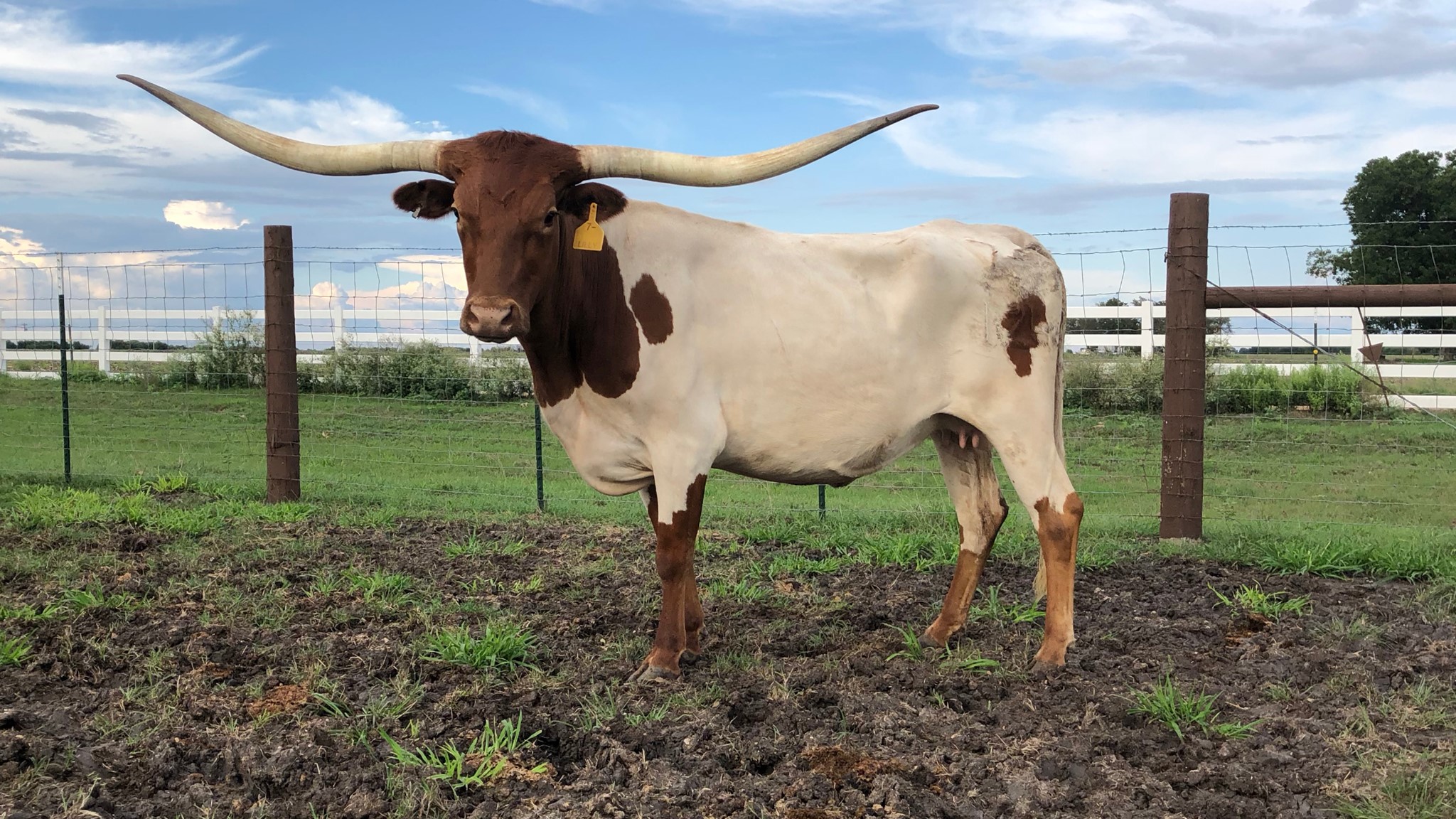 OCV'd; JOHNES NEGATIVE; THIS JP RIO GRANDE DAUGHTER HAS A PERFECT LOW ,FLAT HORN SET THAT IS OVER 86'' TTT ; WE ARE KEEPING 2 HEIFERS FOR REPLACEMENT. SHE IS CONFIRMED BRED TO TKR ROYAL T (HOUDINI X ROYAL TUFFETTE) WHO IS OVER 80'' TTT AT 3.5Y AND HAS WITH 5 OVER 90'' TTT IN PEDIGREE. THAT CALF WILL BE SOMETHING SPECIAL!