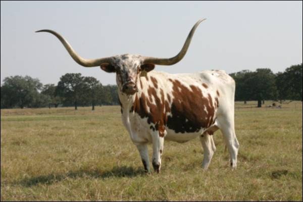 Southern Comfort was our first super cow. She has alot of frame and beautiful handle bar horns. She has produced some nice heifers for use. Her Sittin Bull daughter is now owned by Hudson Longhorns and is doing very well for him.