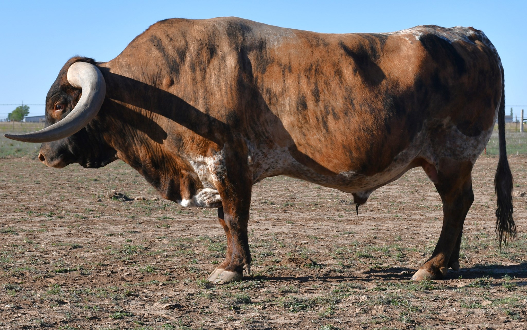 Big bodied, big horn, beautiful brindle bull. Conventional semen available for $125 and sexed for $325. Stored at Champion Genetics. EID#840003147674805